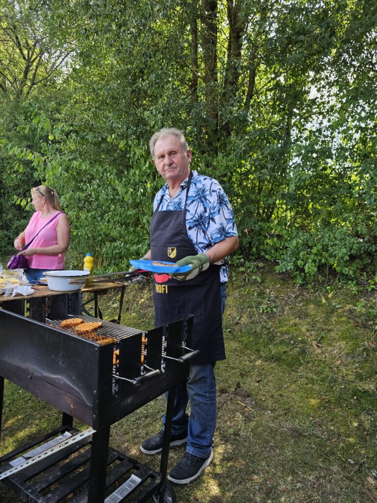 Bei tollem Wetter genossen die ca. 40 Anwesenden kühle Getränke, Essen vom Grill, leckeren Kuchen und den Austausch mit den Kollegen.